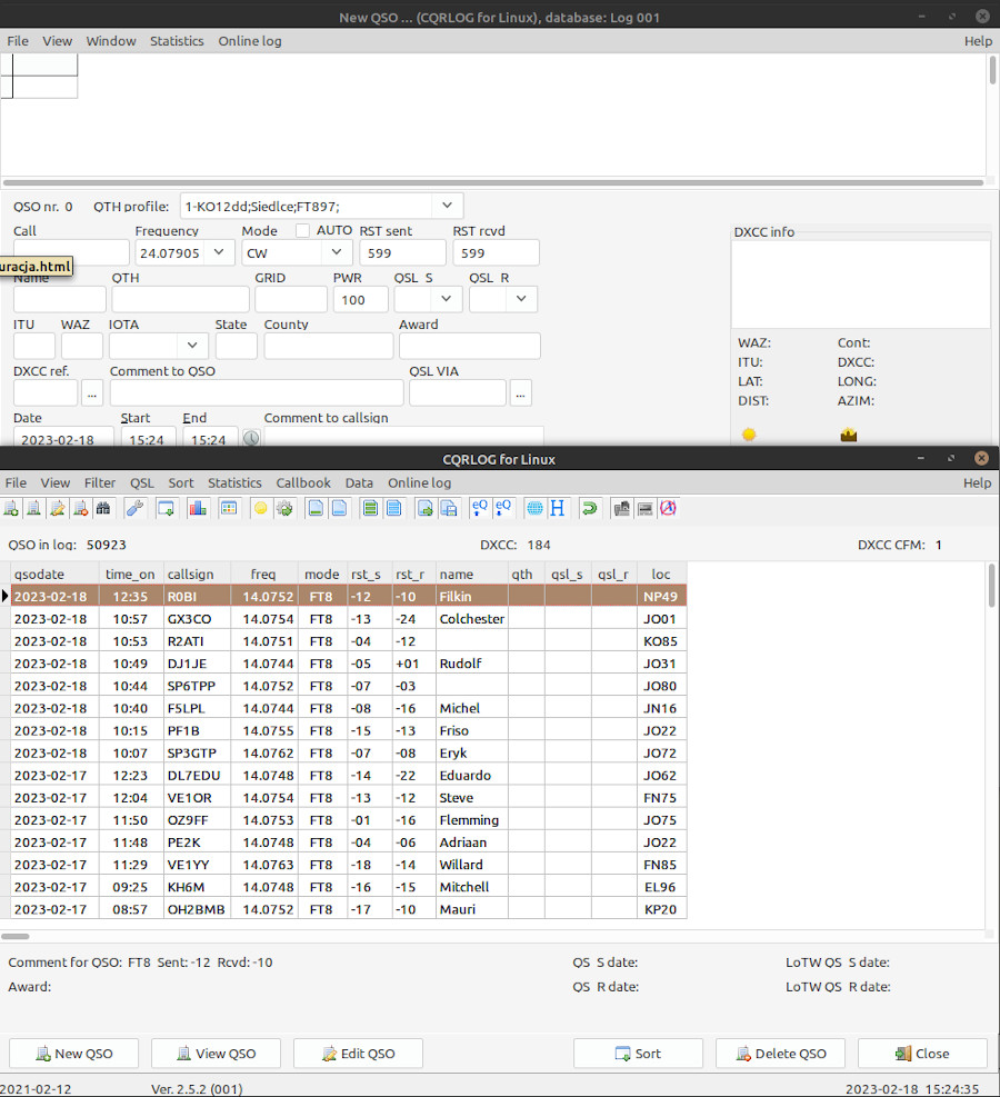 ![]() ![]() Paweł Głuchowski 08-110 Siedlce ul.Woszczerowicza 7m33 Lok: KO12DD QSL Biuro: OT20 +48531359551![]() sp5smy {at}linux.pl ![]() Burze nad polską ![]() czwartkowe komunikaty ![]() help Cqrlog |